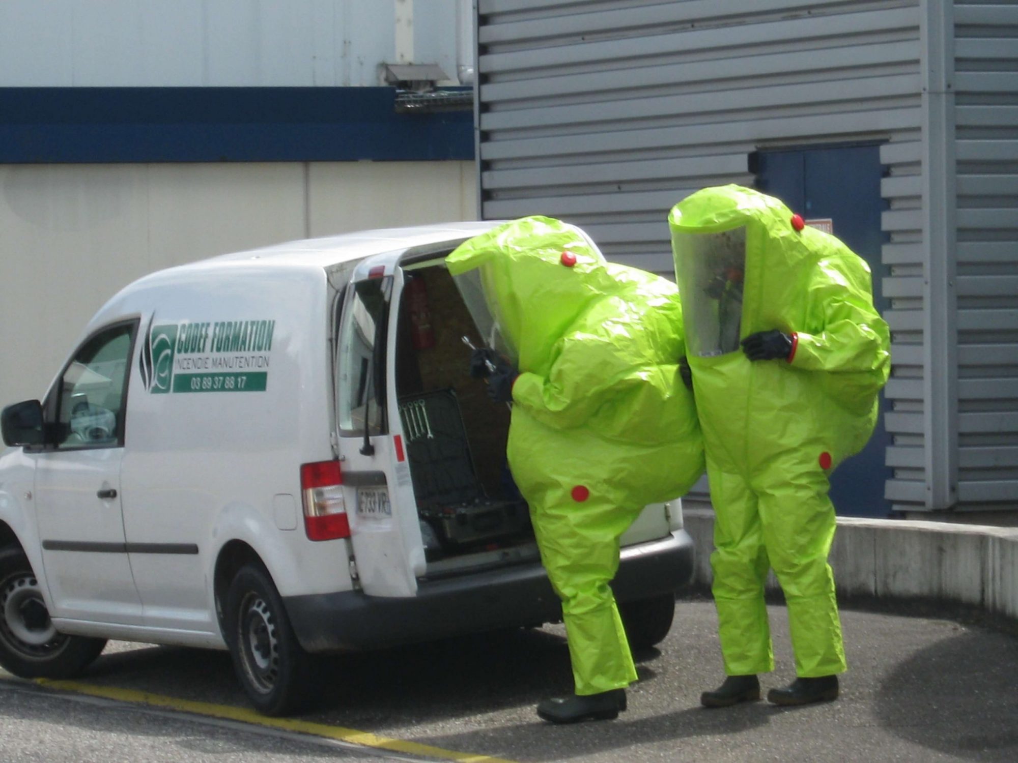 Le scaphandre est un vêtement de protection réutilisable contre les produits chimiques liquides et gazeux afin de créer et de maintenir une atmosphère respirable, isolée de l’air extérieur infecté (fumées d’incendie, atmosphère toxique, etc.).